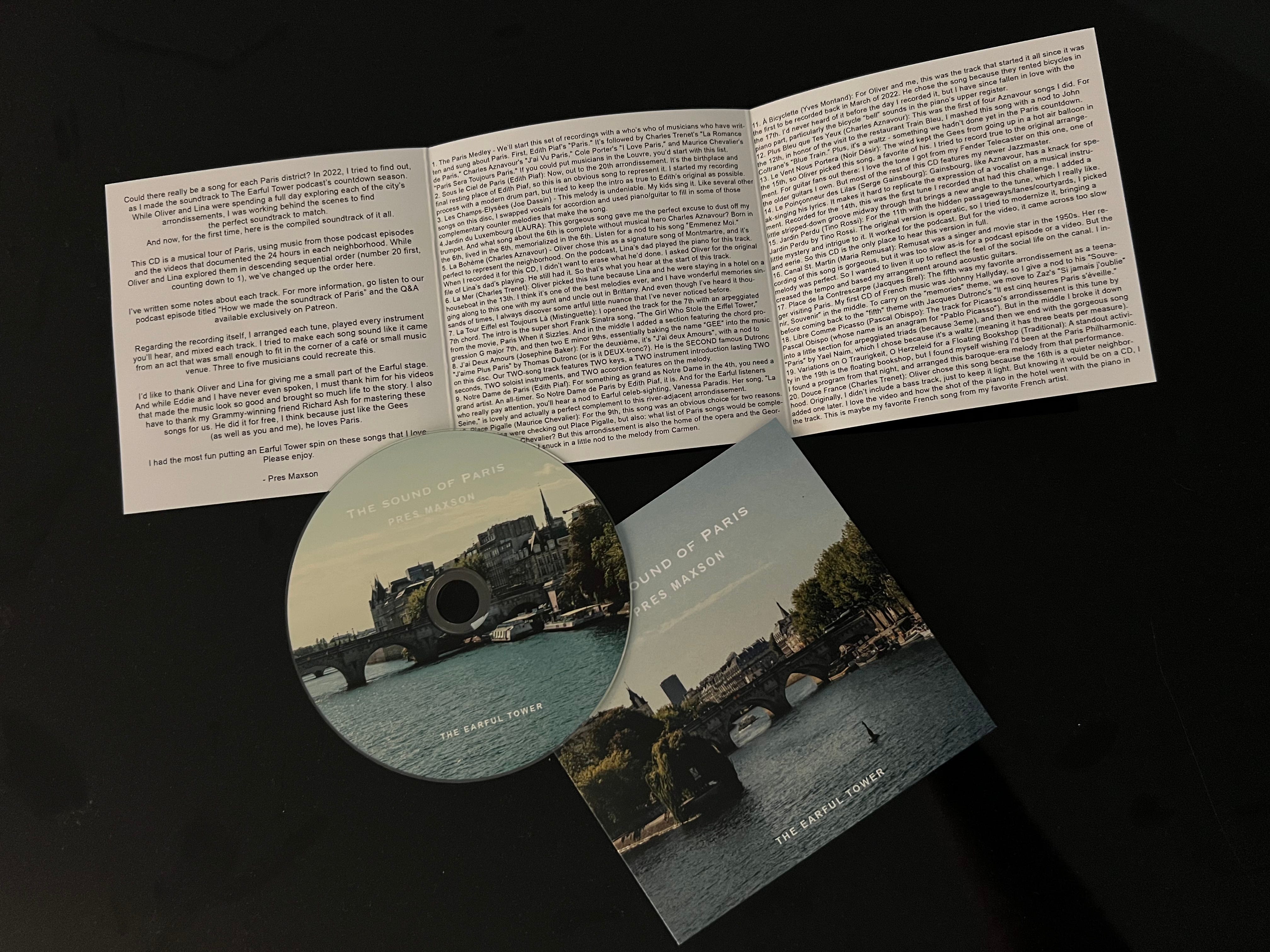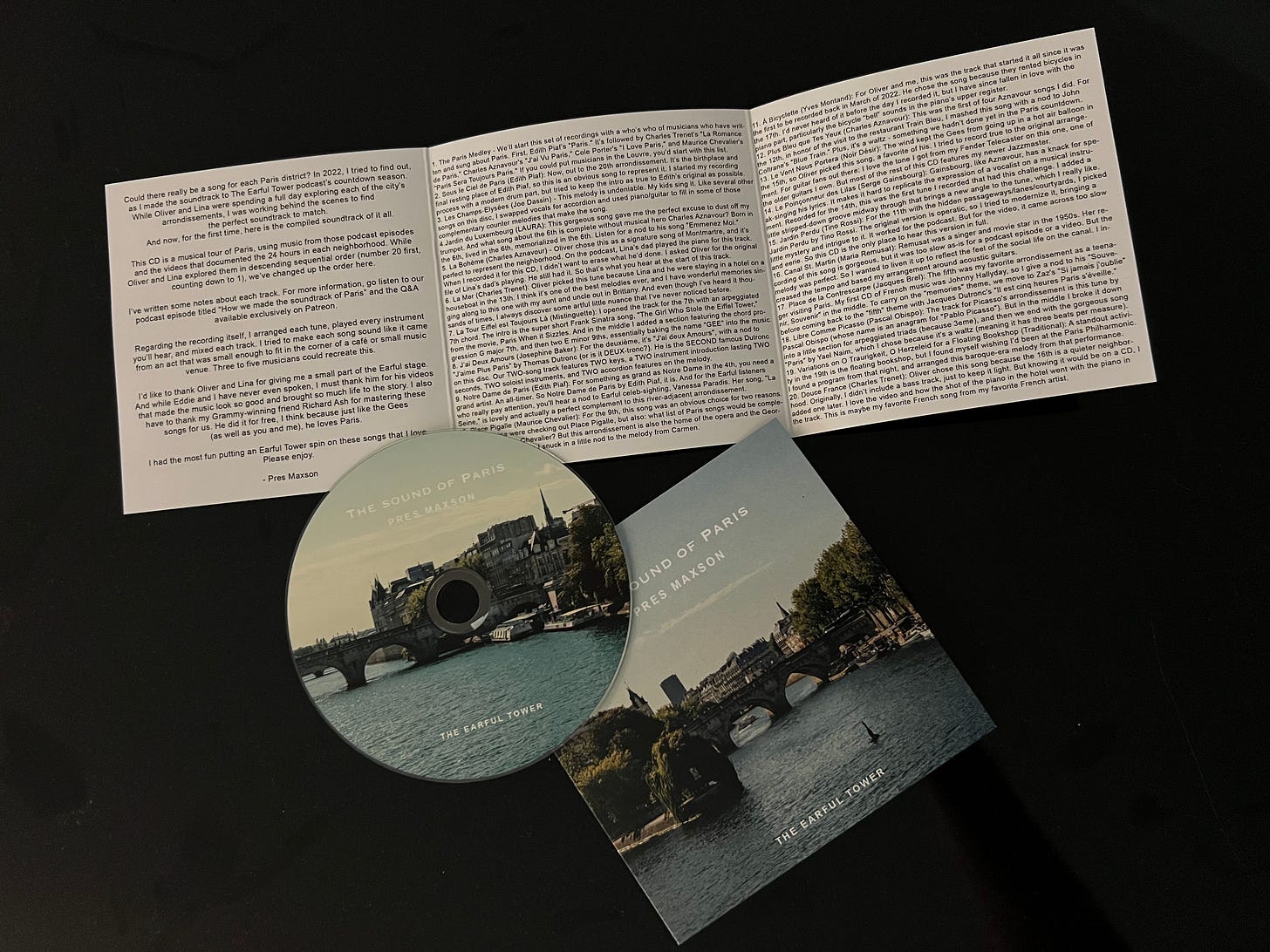 This is the story of my involvement with the Earful Tower, a popular podcast all about Paris. And because of it, I got to do something last week that I haven’t done in over 10 years: listen to a CD of my new music.